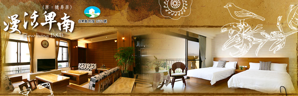 漫活卑南(原:隨易居)用純質的原調,打造 一個私人綠洲,偶爾允許自己 放縱,遠離城市的霓紅,請您 舒緩腳步慢下調子感受自然的 聲音,從自然得到勇氣與樂趣 ,停下腳步來,是為了更長遠 的再出發。